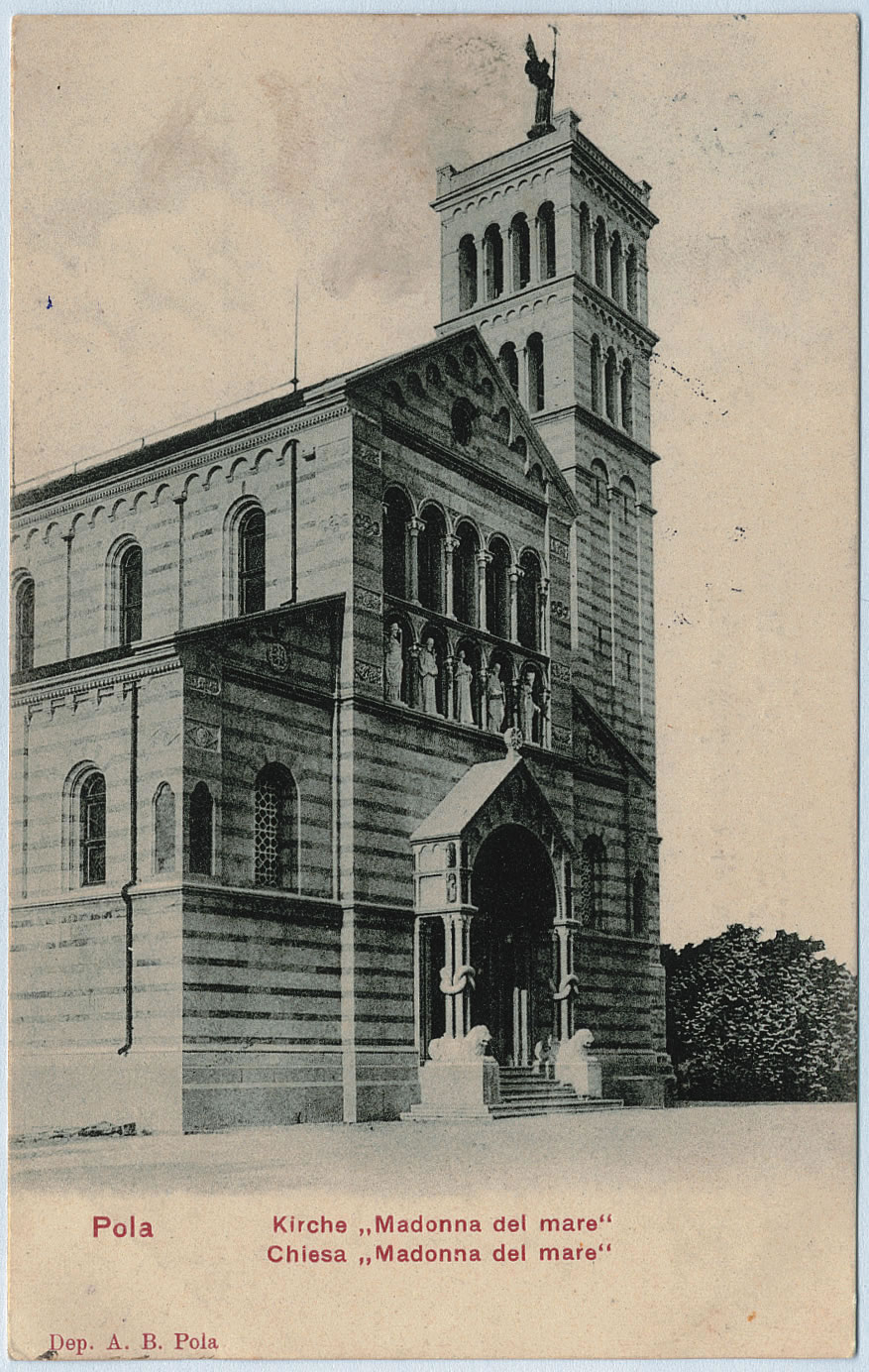 Od bolnice na sjever prema brodogradilištu nalazi se Mornarička crkva (Gospa od Mora) (sl. 20) (3). Ova župna crkva sagrađena je prema projektu arhitekta Natalea Tommasija (1853. – 1924.) na inicijativu mornaričkog zapovjednika Maksimilijana Freiherra Daublebskog von Sternecka. Svečano polaganje kamena temeljca uz nazočnost cara Franje Josipa I. bilo je 28. lipnja 1891. Nakon višegodišnje gradnje, trobrodna bazilika bila je posvećena 2. prosinca 1898. Po dovršetku crkve u njezinoj je kripti u kamenom sarkofagu dobio svoje posljednje počivalište admiral Sterneck.