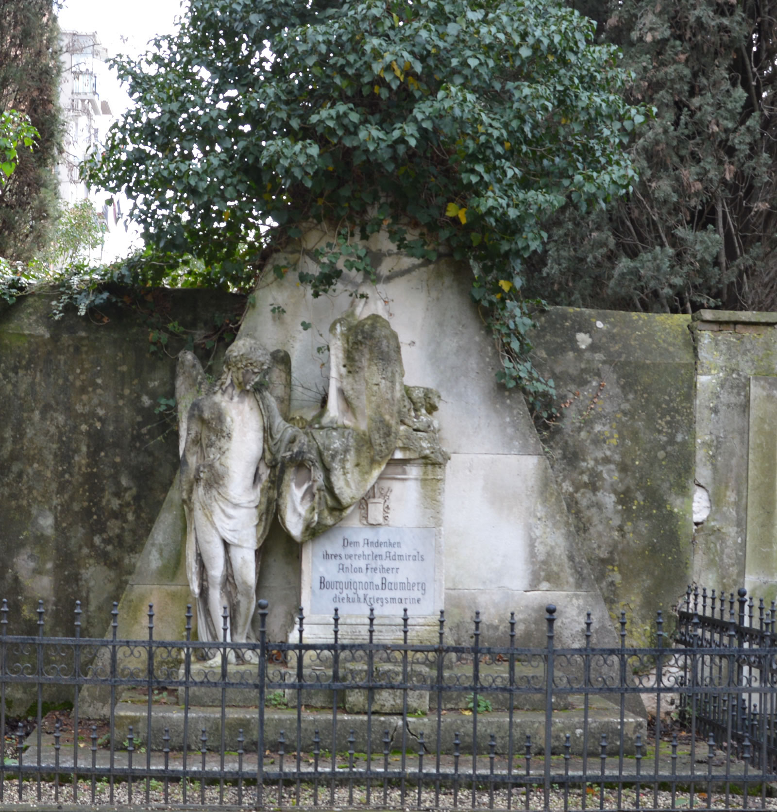 (sl. 23) spomen-ploča J. Vukoviću pl. Podkapelskom na zidu kapelice na groblju (sl. 24) Nadgrobni spomenik admiralu Antonu Freiherru von Bourguignonu