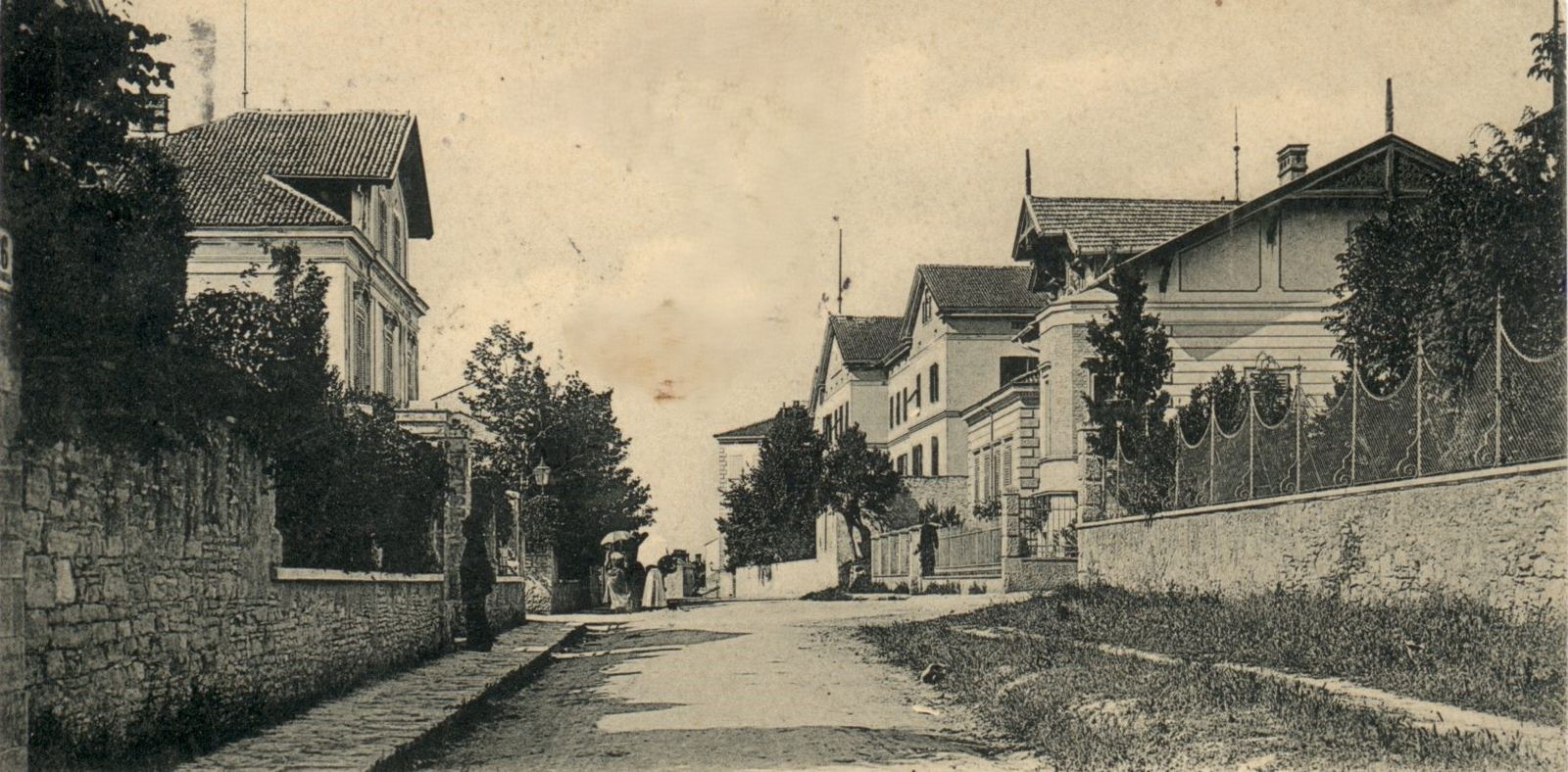 O austrijskim vilama u Puli pisali su arhitekt Antonio Rubbi („Austrijske vile u Puli“, Pula 1996.) i pulski publicist Branko Perović („Austrougarske vile i kuće u Puli – vraćanje memorije gradu“, Pula 2010.). ILUSTRACIJA: Četvrt vila pripadnika Mornarice u gradskoj četvrti San Policarpo (Sv. Polikarp); snimio Alois Beer (Zbirka D. Winklera, Beč).